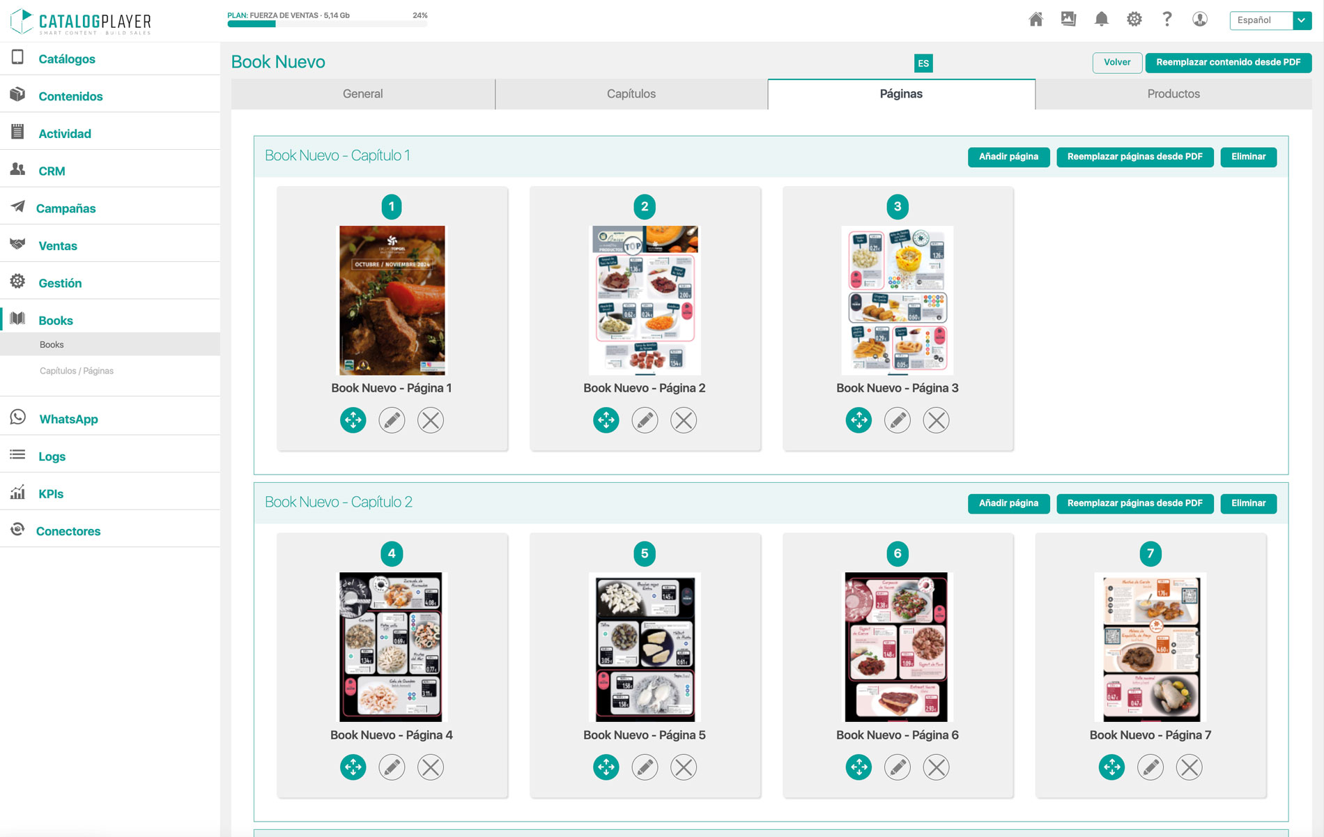 De este modo, el departamento de marketing puede transformar rápidamente catálogos PDF existentes en books digitales interactivos. Esta nueva funcionalidad reduce notablemente el tiempo de creación de Books desde el panel de administración y agiliza su puesta a disposición optimizados para el uso del equipo comercial en movilidad. El usuario importa el archivo PDF completo y el sistema genera automáticamente las páginas del Book, que posteriormente puede editar y organizar.